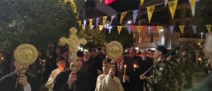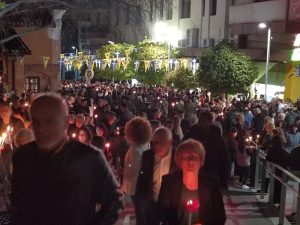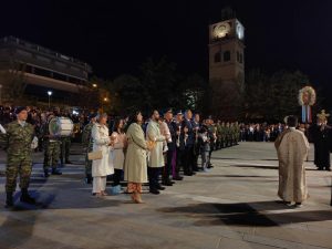 Με επισημότητα, λαμπρότητα και κατάνυξη γιόρτασαν την Ανάσταση του Κυρίου και ευχήθηκαν το “Χριστός Ανέστη” στην κεντρική πλατεία της Κοζάνης, το βράδυ του Μ. Σάββατου 19 Απριλίου.